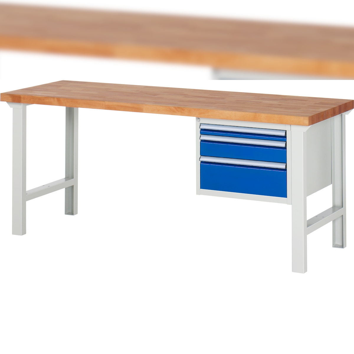 PROREGAL Werkbank Serie 7000 - Modell 7126 | HxBxT 84x200x70cm | 3x Schublade | Schubladenmaße 1x60 + 1x120 + 1x180mm