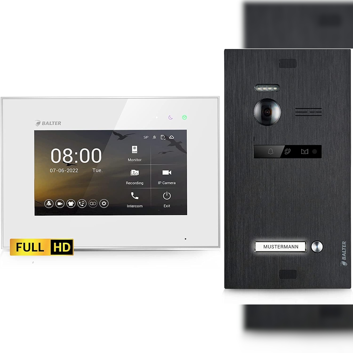 HD Video Türsprechanlage für 1 Familienhaus, 1x Monitor, Balter EVO HD Schwarz