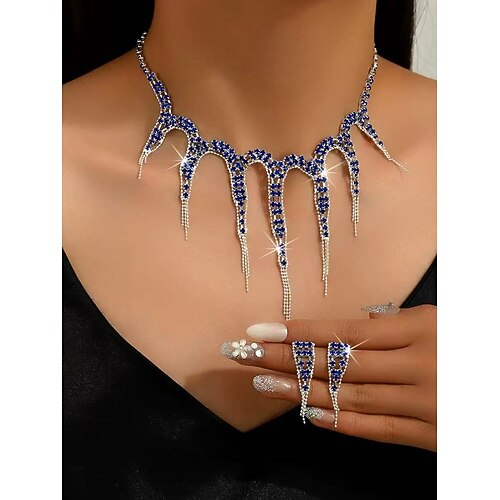 set di gioielli da donna con strass verdi, collana e anelli per la festa di Natale, palla eventi serali