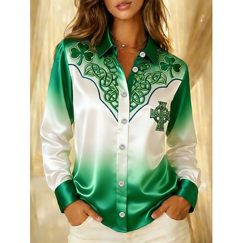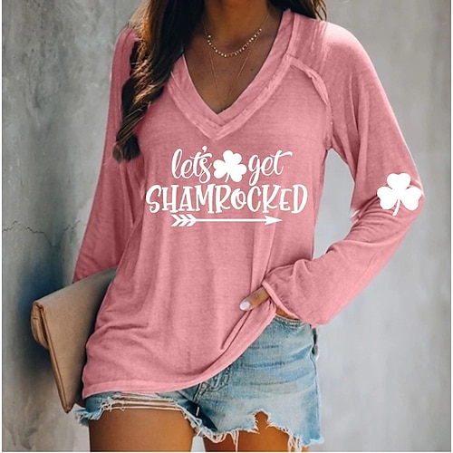 Giorno di San Patrizio Festa di San Patrizio Per donna Maglietta Trifoglio Lettera Moda Manica Lunga Scollo a V Top Regolari Casuale Giorno di San Patrizio Stampato Blu Bianco Rosa Verde Grigio