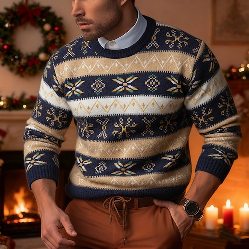 Per uomo Maglione di Natale Maglioni di Natale Maglione per le feste Maglione Maglione a maglia A Coste Maglia Top Regolari Lavorato a maglia Semplice Dolcevita Moda Casual Vacanza Abbigliamento
