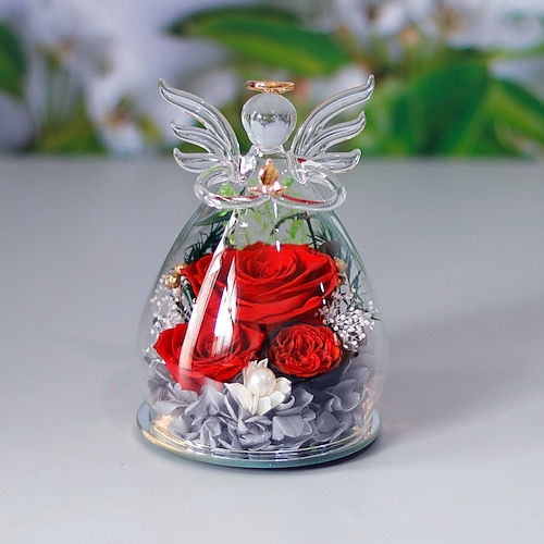 regali per donne rosa conservata per sempre fiore in vetro statuette di angeli fiori freschi festa della mamma regali di compleanno per la mamma rose rosse vere per nonna sorella moglie lei da figlia