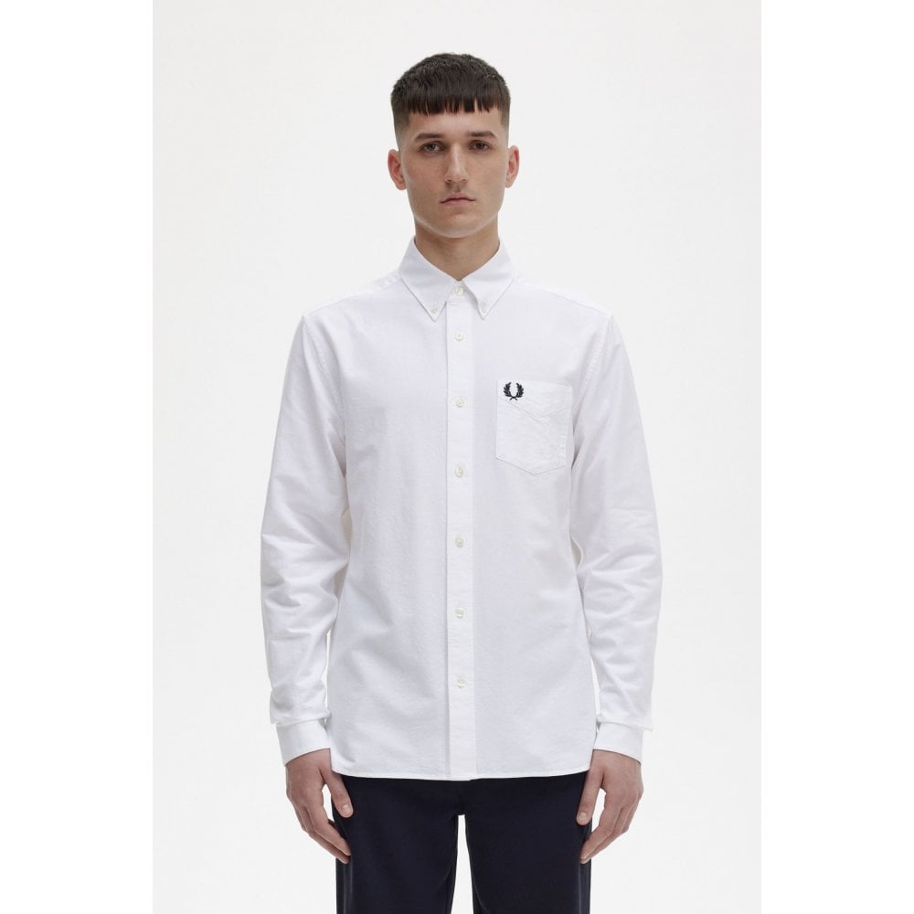 Fred Perry Mens Long Sleeve Oxford Shirt - White Cotton - Size Medium | Fred Perry Sale | Discount Designer Brands
