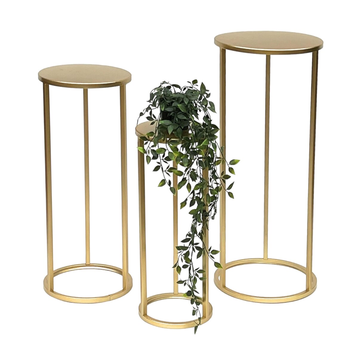 DanDiBo Blumenhocker Metall Gold Rund Blumenständer Beistelltisch 96510 3er Set Blumensäule Modern Pflanzenständer Pflanzenhocker