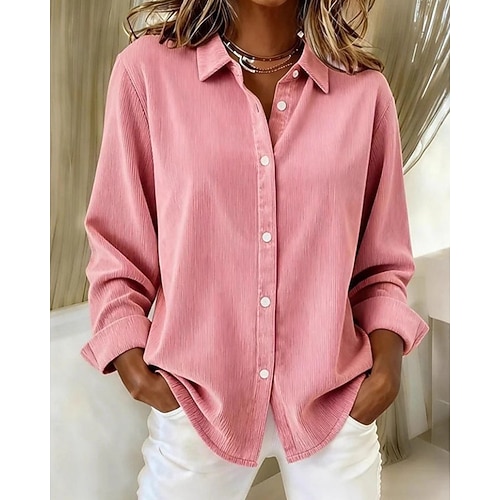 Per donna Camicia Blusa Top Eleganti Tinta unica Semplice Elegante Vintage Signore Manica Lunga Colletto a Camicia Top Regolari Quotidiano Lavoro Ferie Arricciato Patchwork Bottoni Rosa Rosso