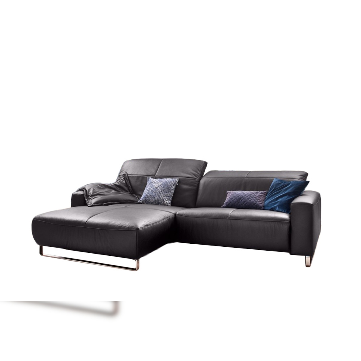 KAWOLA Sofa YORK Leder Life-line mocca Rec links Fuß Metall Chrom matt mit Sitztiefenverstellung