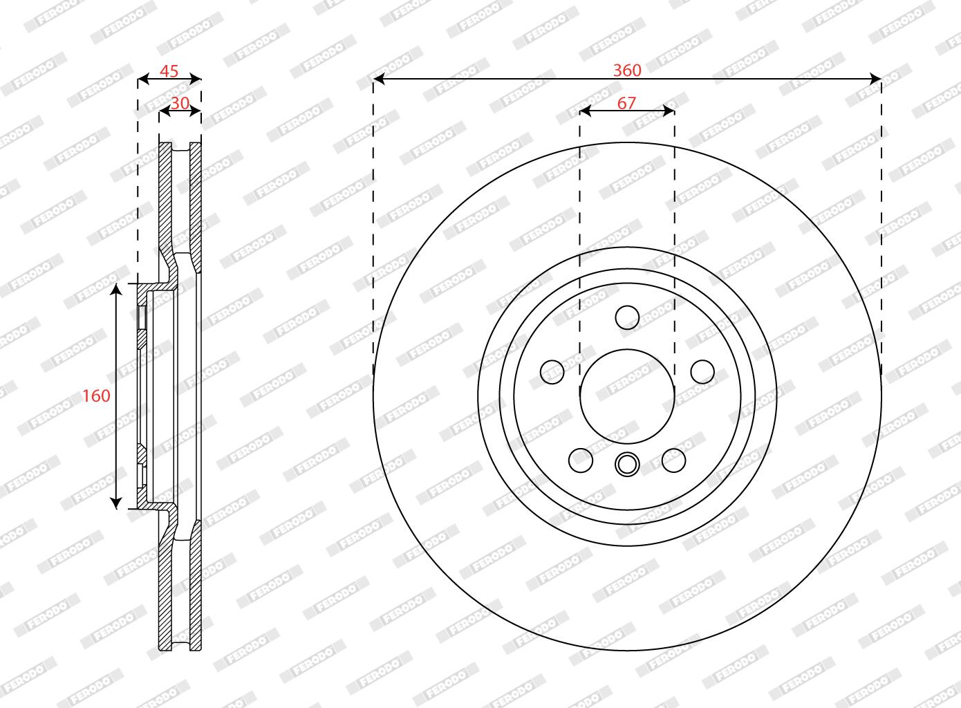 FERODO Bremsscheibe DDF3025LC-1 vorne links belüftet 360mm für MINI BMW 34106884001