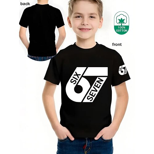 Cotone Bambini Ragazzi Nero Bianco Grafico Gergo divertente 67 Maglietta Blusa Girocollo Manica Corta All'aperto Abbigliamento Quotidiano Moda Streetwear Designer Estate