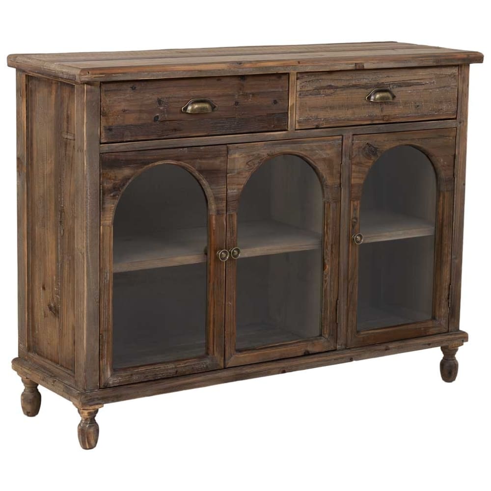 Altobuy Buffet 3 portes 3 tiroirs bois massif vernis sepia et blanc Blanc 130x86x45cm
