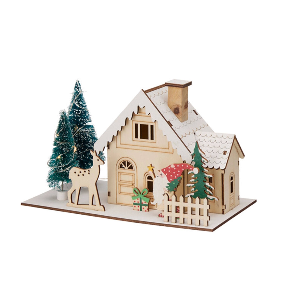 WellHome - Dekoratives Weihnachtshaus mit 11 warmweißen LED-Lichtern 20x10x12,5cm