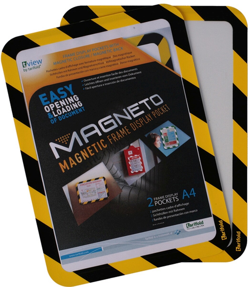 Tarifold Sichtrahmen Magneto Safety Line A4 magnetisch gelb/schwarz 2 Stück Packung mit 10 Stück