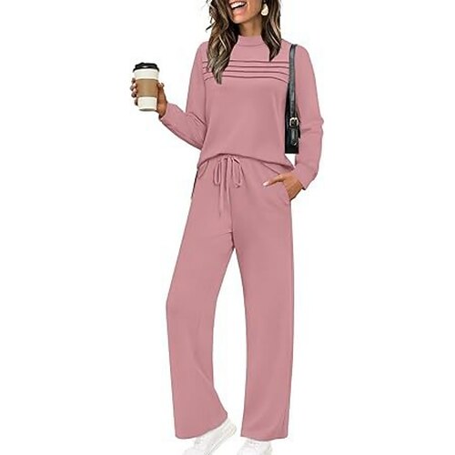 Per donna Attivo Streetwear Blusa Set di Pantaloni Manica Lunga Scollo a V Tinta unica All'aperto Vacanza Nero Bianco Rosa Autunno Vestibilità regolare
