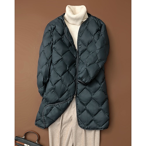 Per donna Giacca Piumino Cappotto Caldo Confortevole Bottoni Moda Semplice All'aperto Vacanza Uscire Weekend Monopetto Lungo Scollo a V Vestibilità regolare Manica Lunga Capispalla Nero Verde scuro