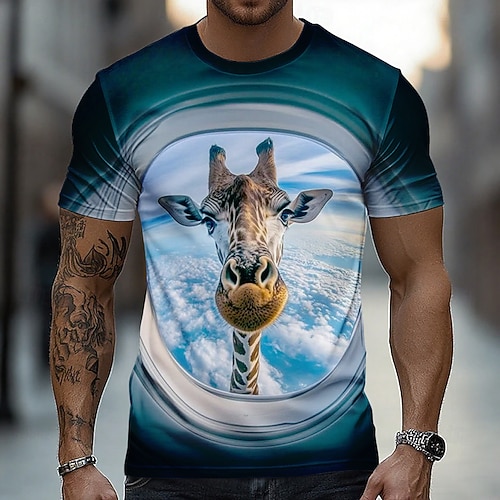 Per uomo Giraffa 3D Divertente Maglietta Manica Corta maglietta Stampa 3D Girocollo Camicia Esagerato Designer Feste Ferie Blu Cachi Estate Primavera Abbigliamento S M L XL XXL XXXL