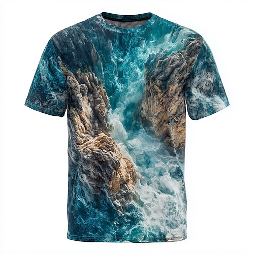Per uomo Illusione ottica 3D Montagna Maglietta Manica Corta maglietta Stampa 3D Girocollo Camicia Esagerato Designer Feste Quotidiano Ferie Blu Marrone Estate Primavera Tutte le stagioni