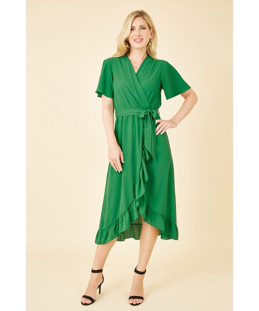 Mela London Womens Green Wrap Over Frill Hem Dress - Size 8 UK | Mela London Sale | Discount Designer Brands