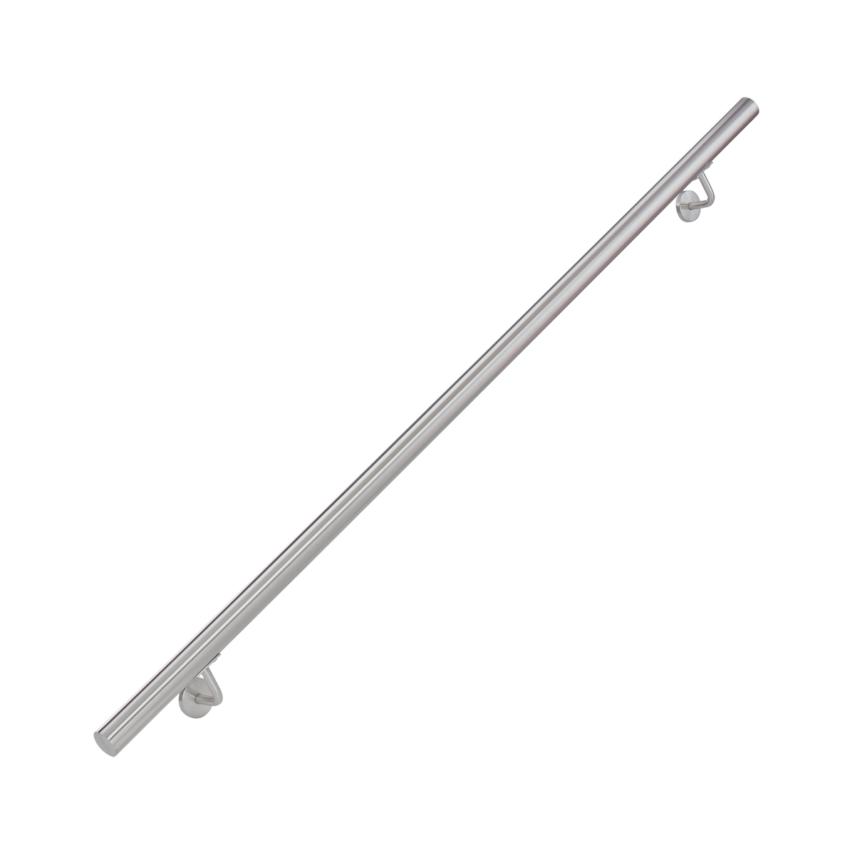 Relaxdays Handlauf, 201er Edelstahl, matt, rundes Treppengeländer, innen & außen, 150 cm, Ø 38 mm, mit Halterung, silber