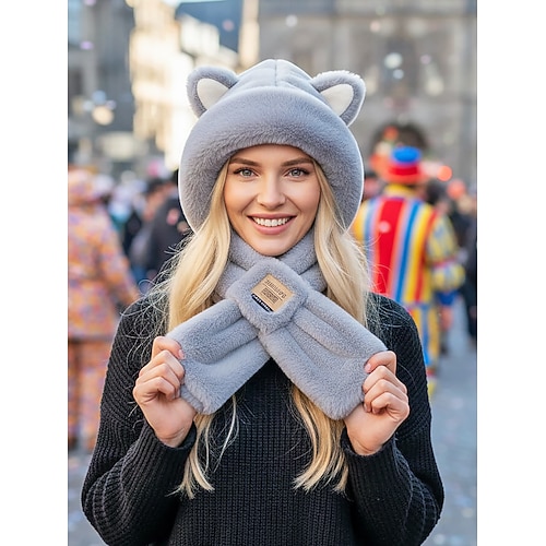 Berretto invernale 3 in 1, berretto lavorato a maglia, sciarpa e mascherina per donna, foderato in pile, caldo berretto con protezione per le orecchie, cappello lavorato a maglia accogliente per ragazze, per ciclismo all'aperto e per il freddo