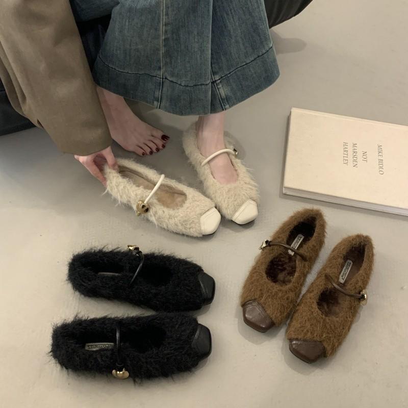 2025 autumn and winter new French evening breeze temperament pointed single shoes women's fluffy shoes women's outer wear fairy Mary Jane cm black