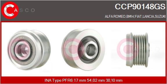 CASCO Riemenscheibe, Generator CCP90148GS Universal 54,02mm für SUZUKI GENERAL MOTORS FIAT OPEL VAG IKA 437504 1204517 1204392