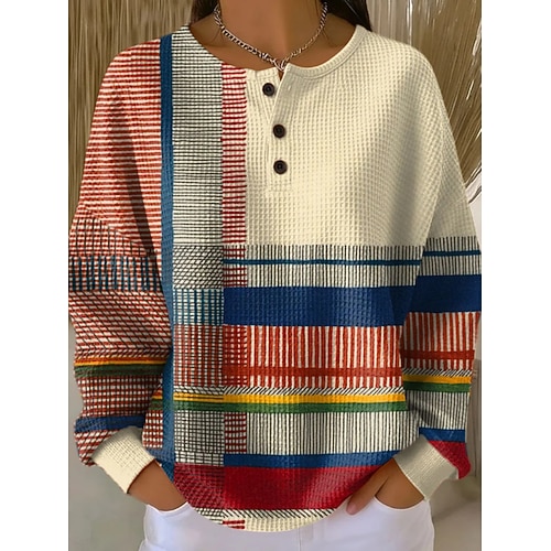 Per donna Blusa Geometrico Plaid Elegante Casual Manica Lunga Girocollo Top Regolari Quotidiano Stampato Blu Verde salvia Blu marino Verde Cachi Primavera Autunno Inverno
