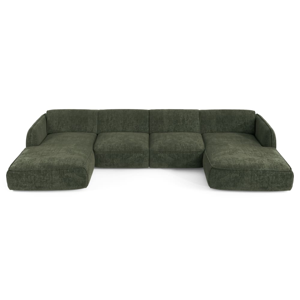 Divano panoramico 7 posti in velluto tramato verde oliva