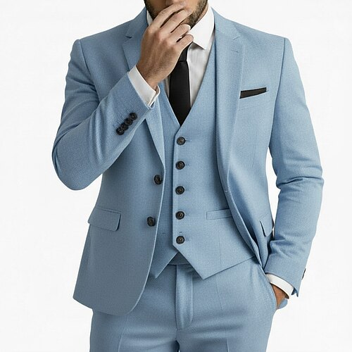 Uomo matrimonio invernale Semi-Formale Abiti da lavoro Bavero classico Nero Borgogna Affari Formale Tinta unita Vestibilità su misura 3 pezzi Monopetto Due Bottoni