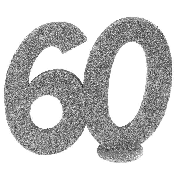 60. Geburtstag silber glitzer Tischdekoration 11x 10 cm Zahl 60