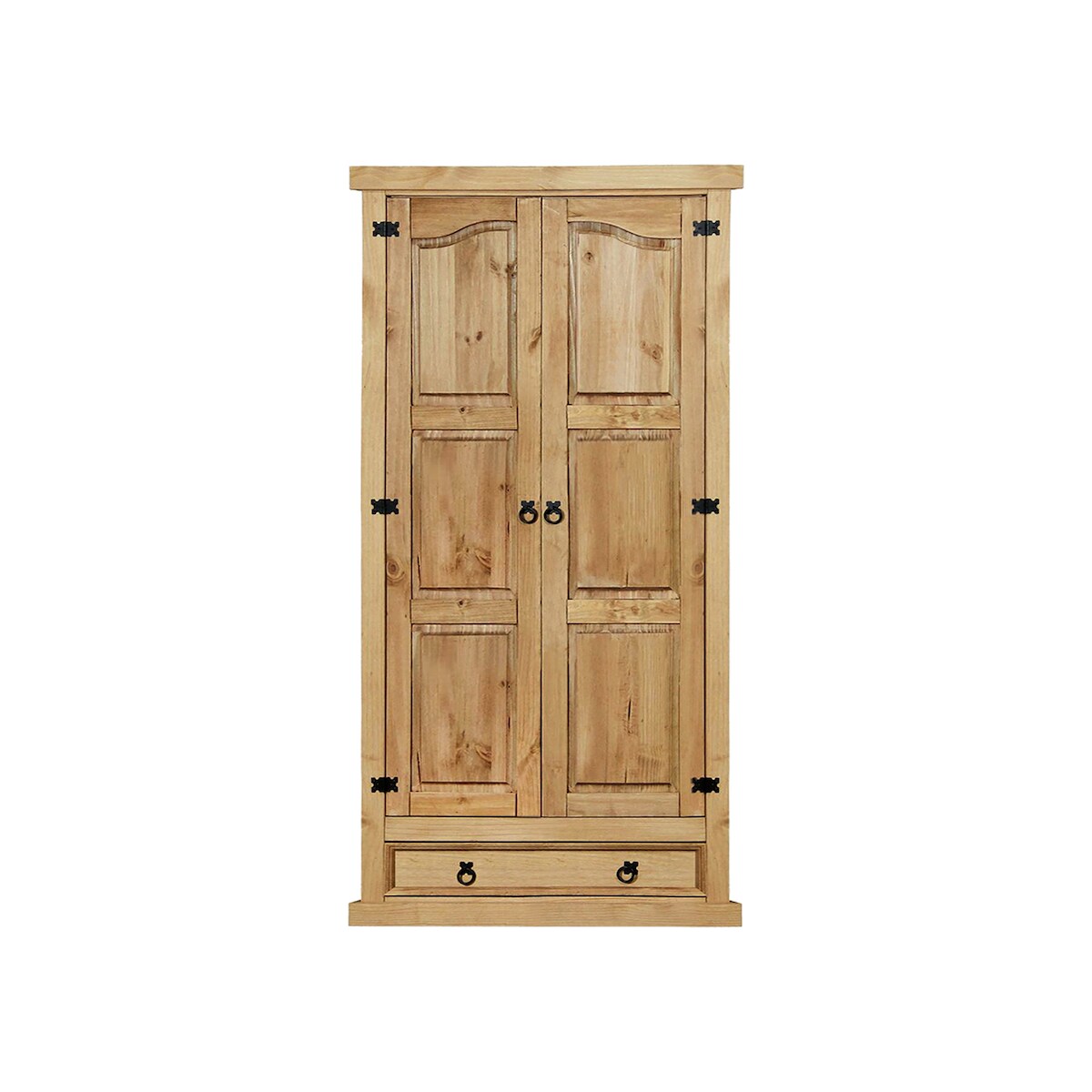 Möbilia Kleiderschrank | mit 2 Türen, 1 Schublade | Kiefer-Holz massiv | naturfarben gewachst | B 102 x T 56 x H 205 cm | 19020066 | Serie SCHRANK