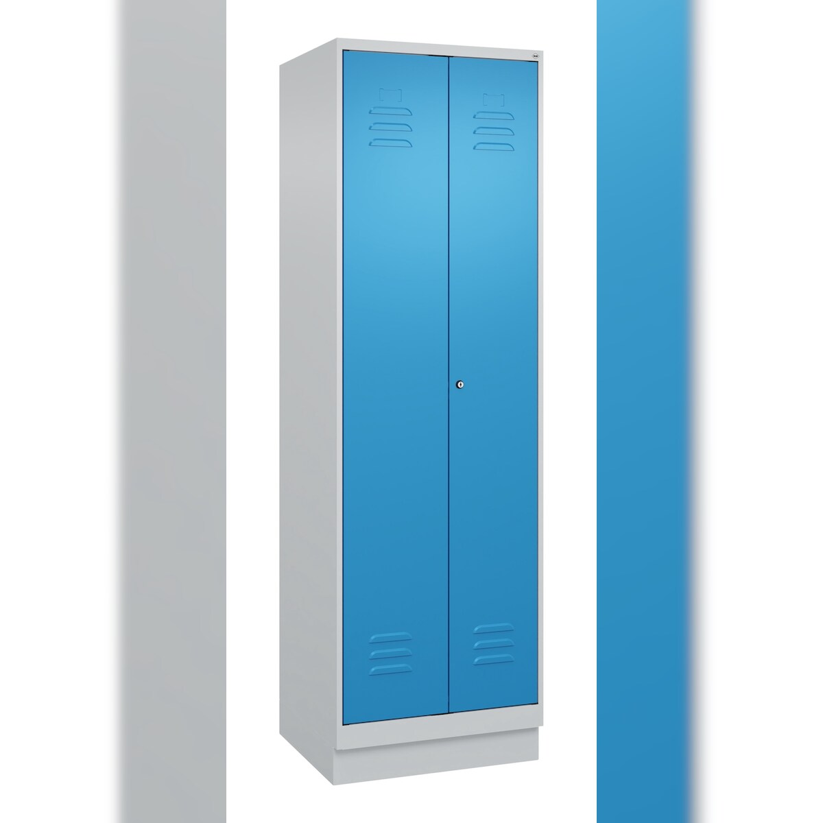C+P Aufbewahrungs Doppel-Spind Classic PLUS, Sockel, 2 Abteile, 4 Fachböden, HxBxT 195x60x50cm, Zylinderschloss, Hellgrau/Lichtblau von PROREGAL