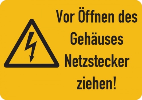 Warnschild, Netzstecker ziehen!, Folie - ISO 7010 - 52x37 mm Folie selbstklebend