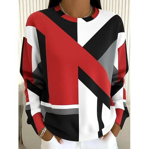 Per donna Felpa Pullover Geometrico Blocco di colori Casual Manica Lunga Girocollo Top Regolari Streetwear Abbigliamento Quotidiano Casuale Rosso Primavera Autunno Inverno