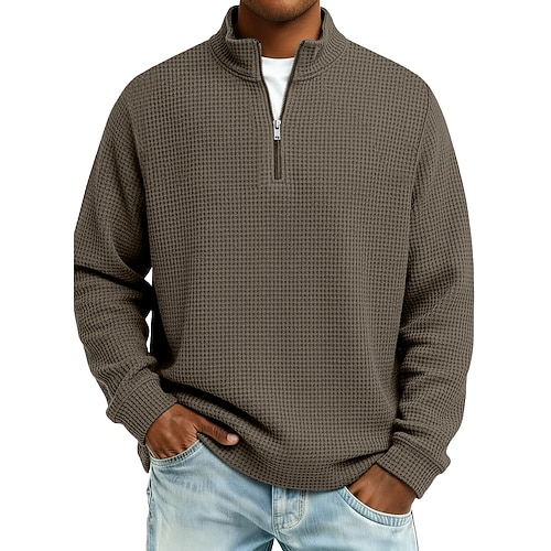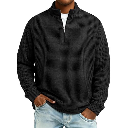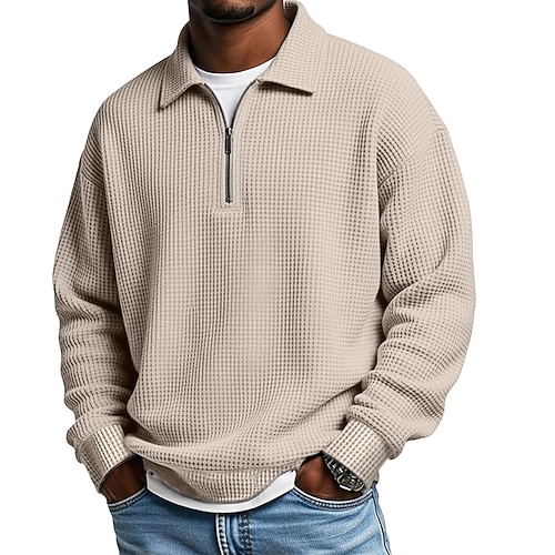 Per uomo Magliette Polo a Nido d'Ape Testurizzato All'aperto Casual Zip a un quarto Manica Lunga Moda Moderno Tinta unica Testurizzato Lavorato a maglia Autunno Primavera Autunno Autunno Inverno