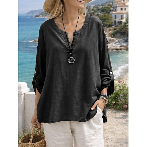 Per donna Camicia Blusa Orlo asimmetrico Semplice Casual Manica Lunga Scollo a V Top Regolari Quotidiano Ferie Uscire Nero Bianco Rosa Verde militare Verde Estate Primavera
