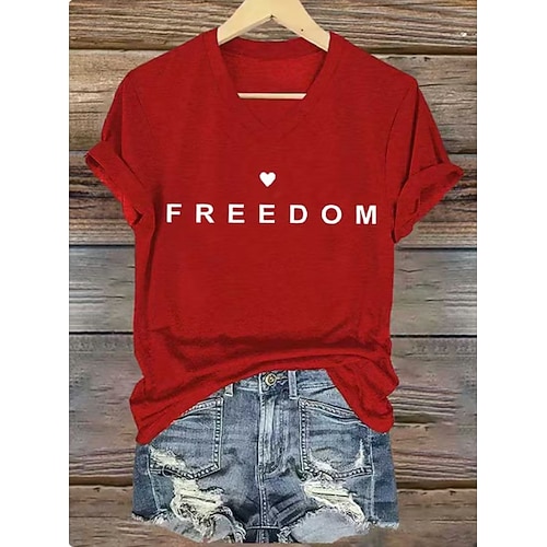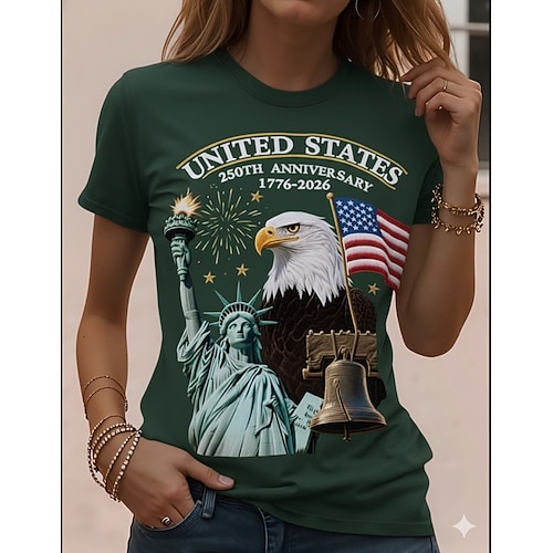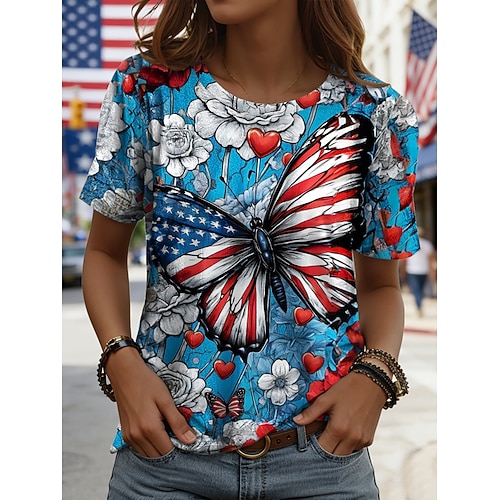 Giorno dell'Indipendenza Americana Per donna Maglietta Grafico Lettera Bandiera Americana Vintage Elegante Casual Manica Corta Girocollo Top Regolari Quotidiano Weekend Stampato Blu Rosa Rosso Estate
