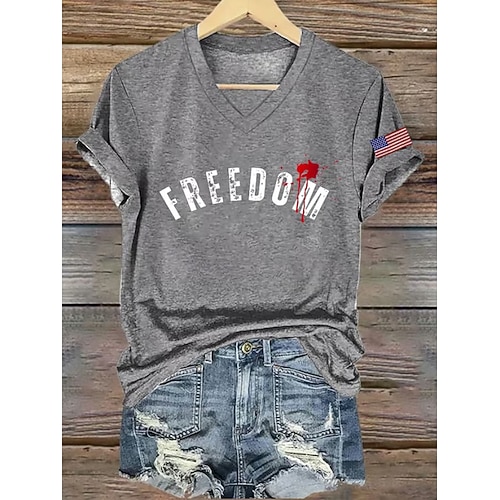 Giorno dell'Indipendenza Americana Per donna Maglietta Grafico Lettera Bandiera Americana Vintage Elegante Classico Manica Corta Girocollo Scollo a V Top Regolari Quotidiano Weekend Stampato Blu Nero