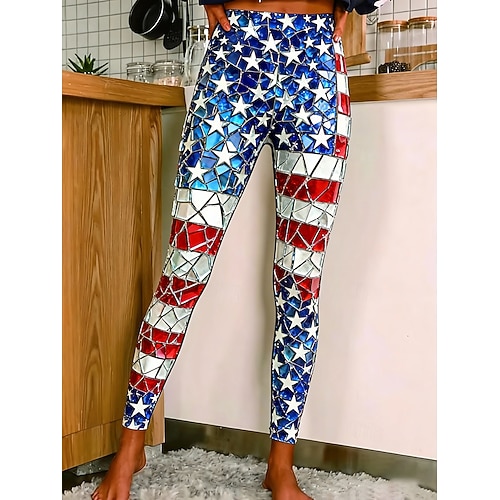 Giorno dell'Indipendenza Americana Per donna Maglietta Grafico Bandiera Americana Vintage Elegante Classico Manica Corta Girocollo Top Regolari Quotidiano Weekend Stampato Blu Nero Bianco Rosso