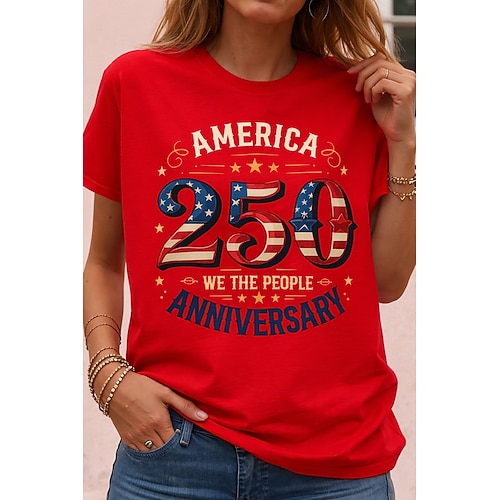 Camicia Patriottica Americana 250° per Donne Grafica Bandiera USA Vintage Tropicale Top Regolari Stampa Giornaliera Rossa Primavera