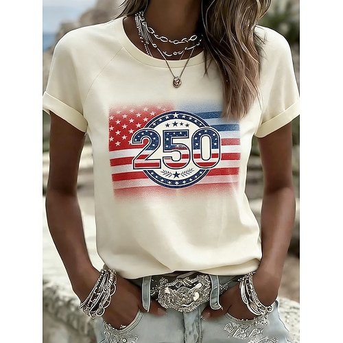 Maglietta Patriottica Americana per il 250° Anniversario Maglietta da Donna Grafica Bandiera Nazionale Vintage Elegante Classica Maniche Corte Collo Tondo Stampa Quotidiana Weekend Blu