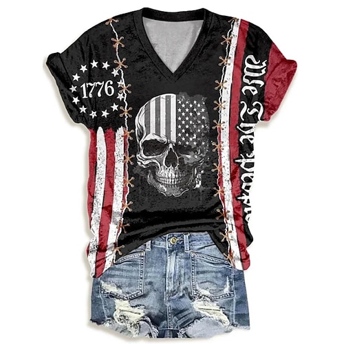 Giorno dell'Indipendenza Americana Per donna Maglietta Stampato Grafico Bandiera Vintage Elegante Classico Manica Corta Scollo a V Top Regolari Quotidiano Nero Estate Primavera