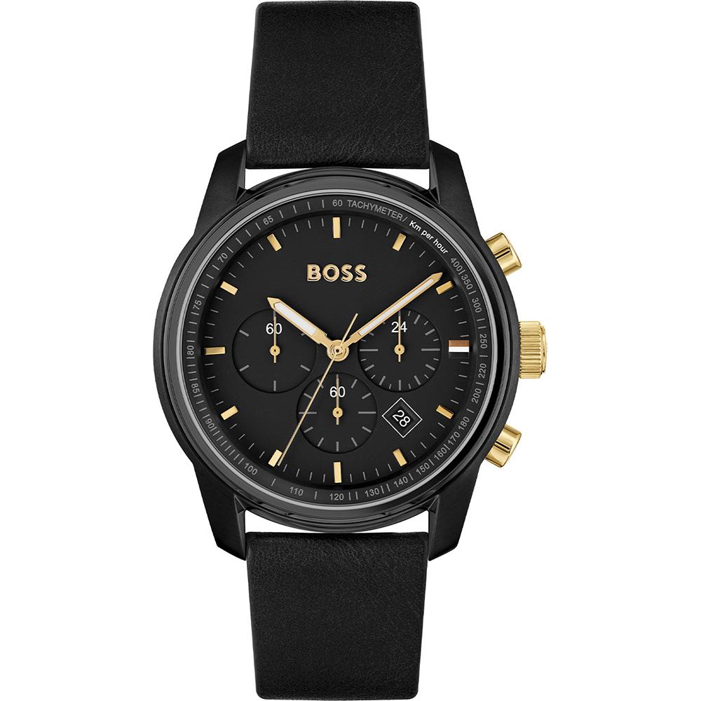 Montre Chronographe à Quartz Homme BOSS Trace Cuir Noir 1514003 noir