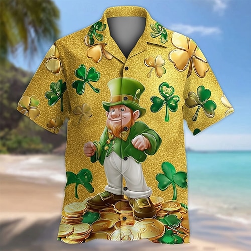 Camicia da uomo per il giorno di San Patrizio con shamrock e moneta d'oro camicia colletto cubano a maniche corte vintage retro all'aperto estate primavera colletto camp stampa 3D camicie a bottoni