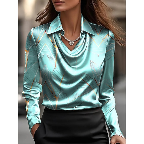 Camicia da donna Elegante Top Formale Camicia da lavoro Grafica Geometrica Elegante Stile Casual Manica Lunga Collo Feste Sera Abbigliamento Quotidiano Glitter Bianco Rosa Blu Verde Primavera Autunno