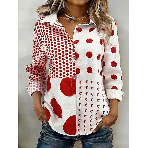 San Valentino Per donna Camicia Bottoni Stampato Cuore Grafico Vintage Elegante Moderno Manica Lunga Colletto a Camicia Top Regolari Quotidiano Nero Bianco Rosa Rosso Primavera Autunno