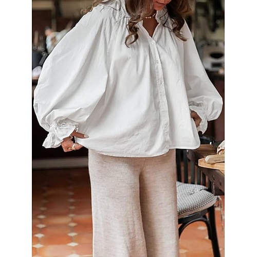 Per donna Camicia casual Camicia con Bottoni Blusa Volant Bottoni Tinta unica Elegante Vacanza Manica Lunga Collo alla coreana Top lunghi Quotidiano Spiaggia Ferie Blu Nero Bianco Rosso Cachi Estate