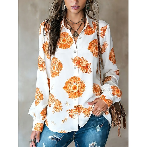 Per donna Camicia Bottoni Stampato Grafico Paisley Vintage Elegante Moderno Manica Lunga Colletto a Camicia Top Regolari Quotidiano Bianco Rosso Viola Arancione Estate Primavera