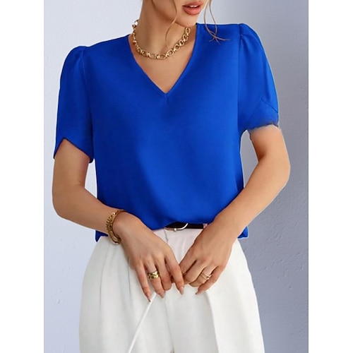 Per donna Camicia Camicia casual Blusa Semplice Elegante Classico Casual Manica Corta Manica a Palloncino Scollo a V Top Regolari Quotidiano Ferie Uscire Blu Nero Bianco Verde chiaro Arancione