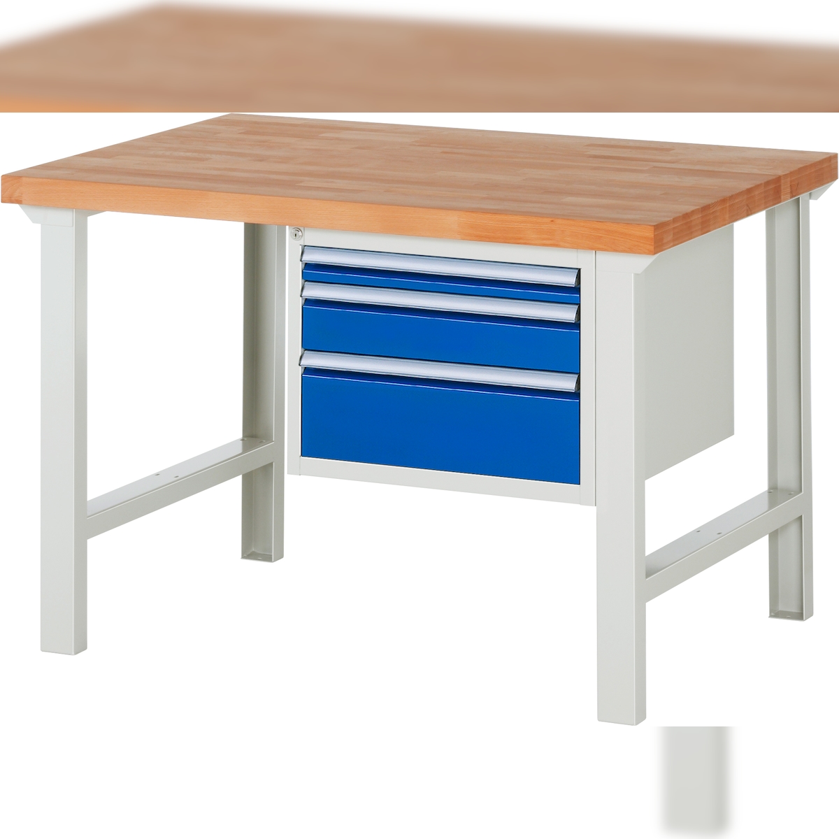 PROREGAL Werkbank Serie 7000 - Modell 7126 | HxBxT 84x125x90cm | 3x Schublade | Schubladenmaße 1x60 + 1x120 + 1x180mm
