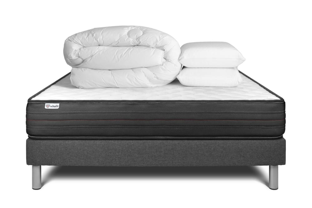 Actisom Pack sommier kit matelas Latex et mémoire de forme 160x200 Gris