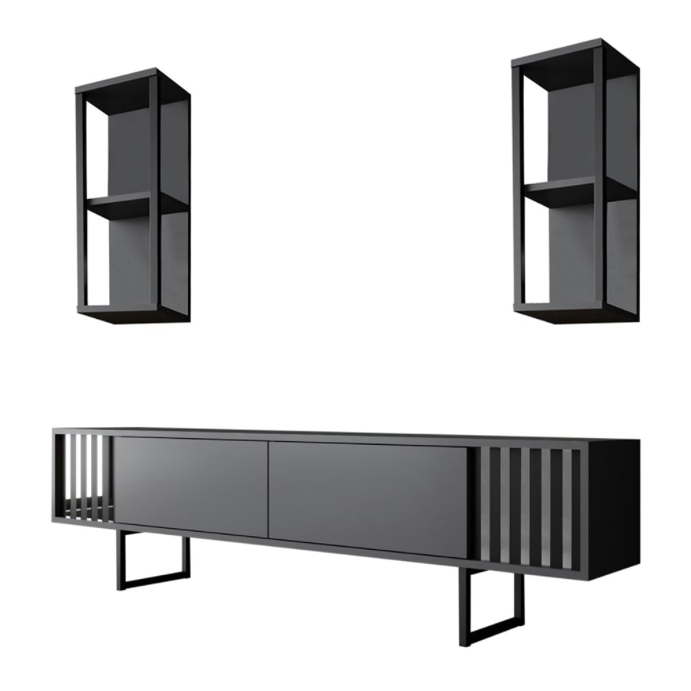 Mobile TV a 2 ante e 1 cassetto in legno e metallo nero